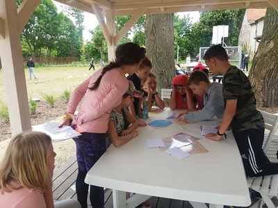 Dzień Dziecka 4b Byliśmy z klasą 4b na pikniku z okazji Dnia Dziecka. Miejscem zabawy był "Miejski Ogród" w Górze Kalwarii.