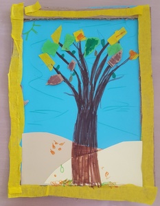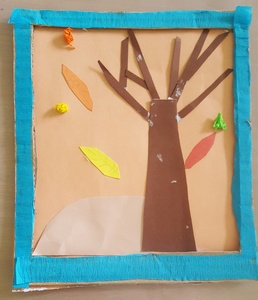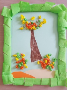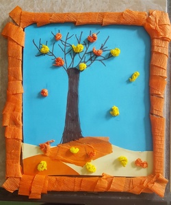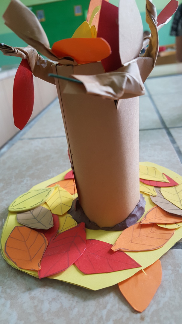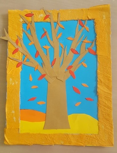 Prace z papieru kl. V W ramach zajęć na lekcji techniki uczniowie klas V wykonywali "Jesienny obrazek" lub "Drzewo 3D"
