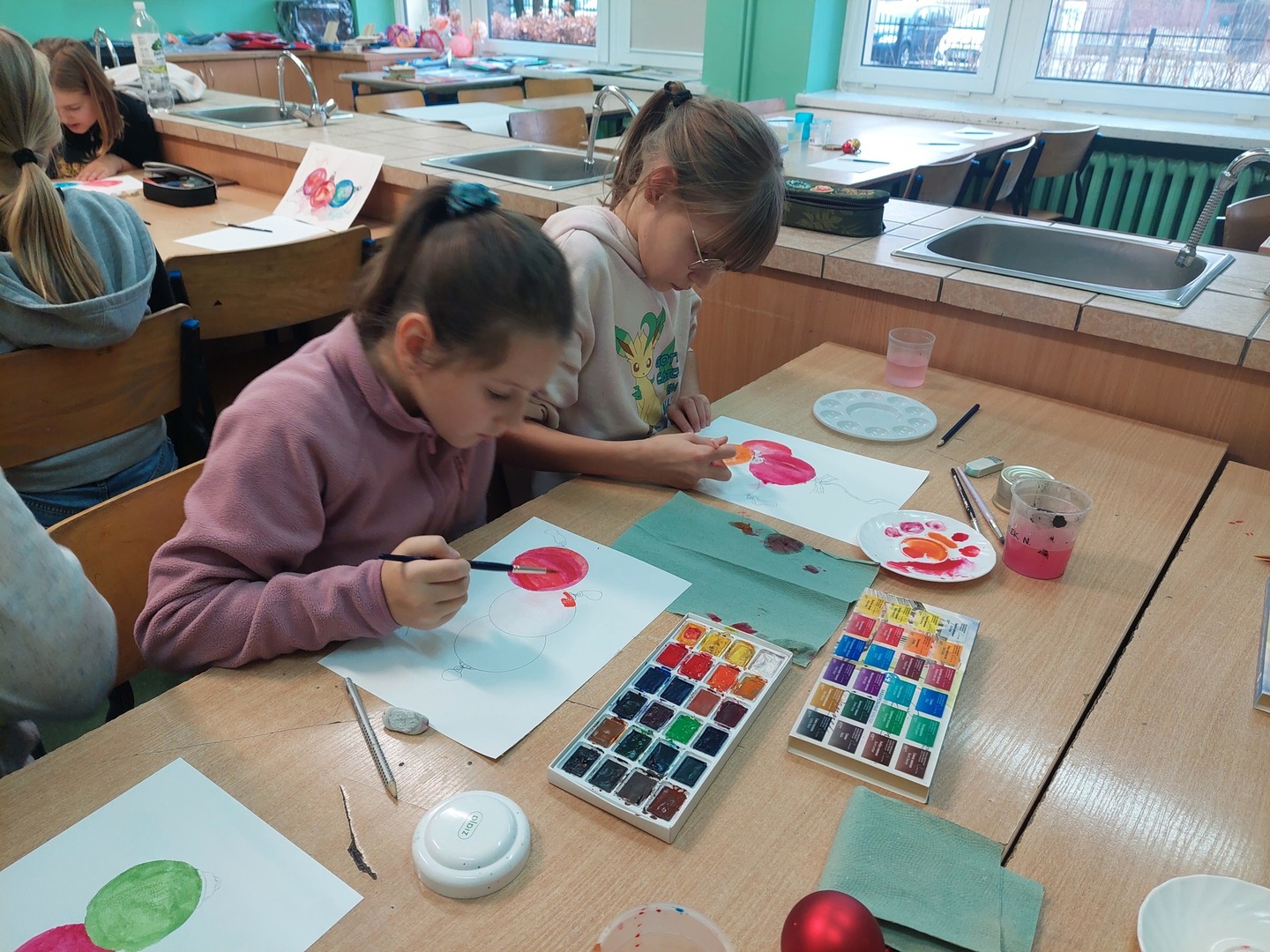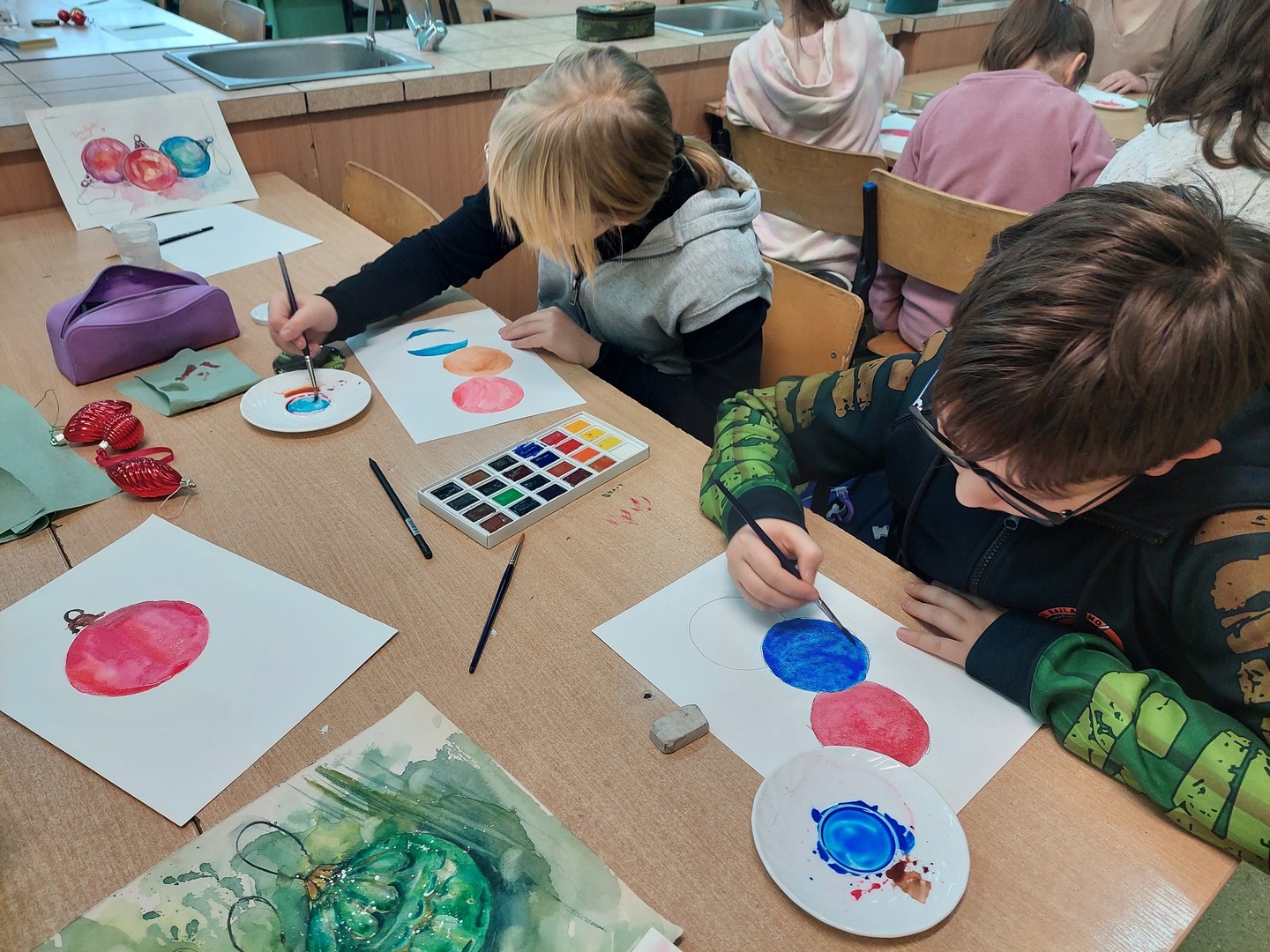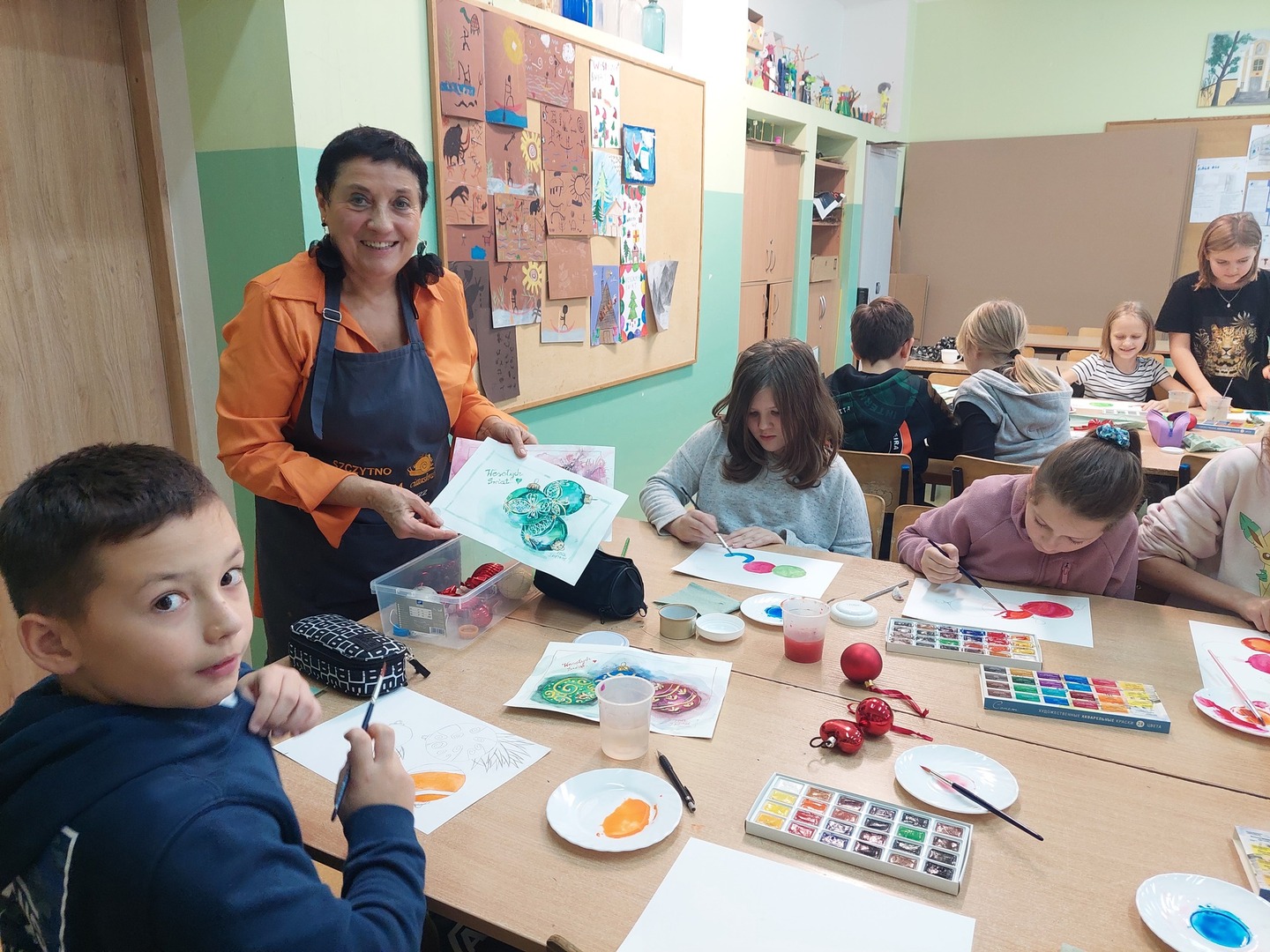 Artystka była gościem p. Joanny Jakubowskiej i uczniów uczestniczących w pozalekcyjnych zajęciach plastycznych. Uczniowie pod okiem pani Teresy zgłębiali tajniki malowania akwarelami.