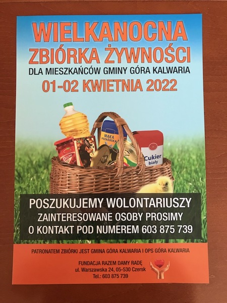 14 marca 2022 Aktualności Wielkanocna zbiórka żywności dla mieszkańców gminy... Wolontariusze do przeprowadzenia akcji w wieku od 13 roku życia mile widziani. Czytaj więcej